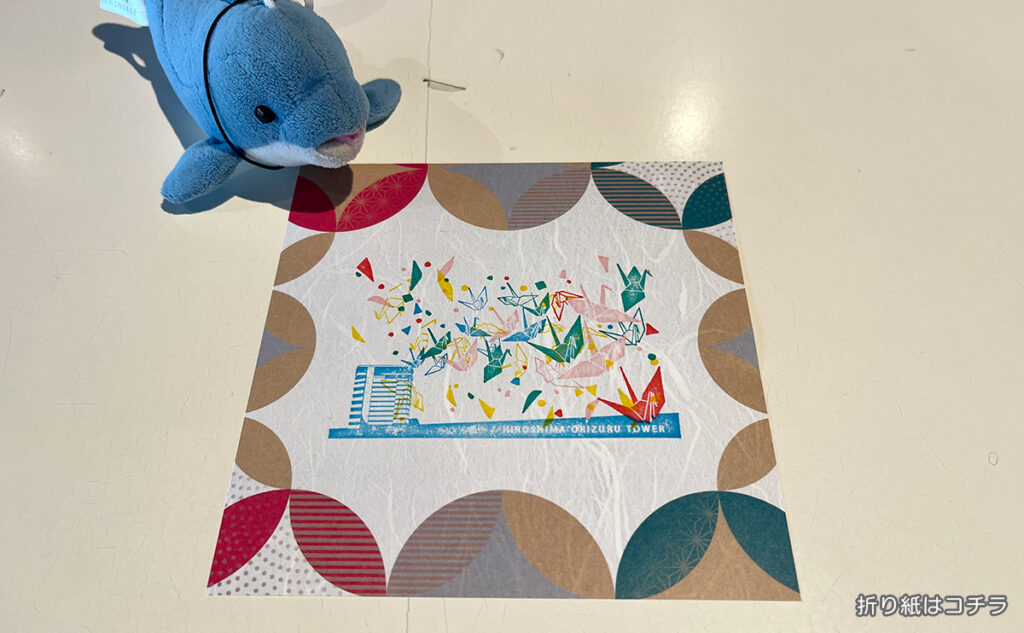 折り紙を買って、折り鶴を折って「おりづるの壁」に投函できます。
