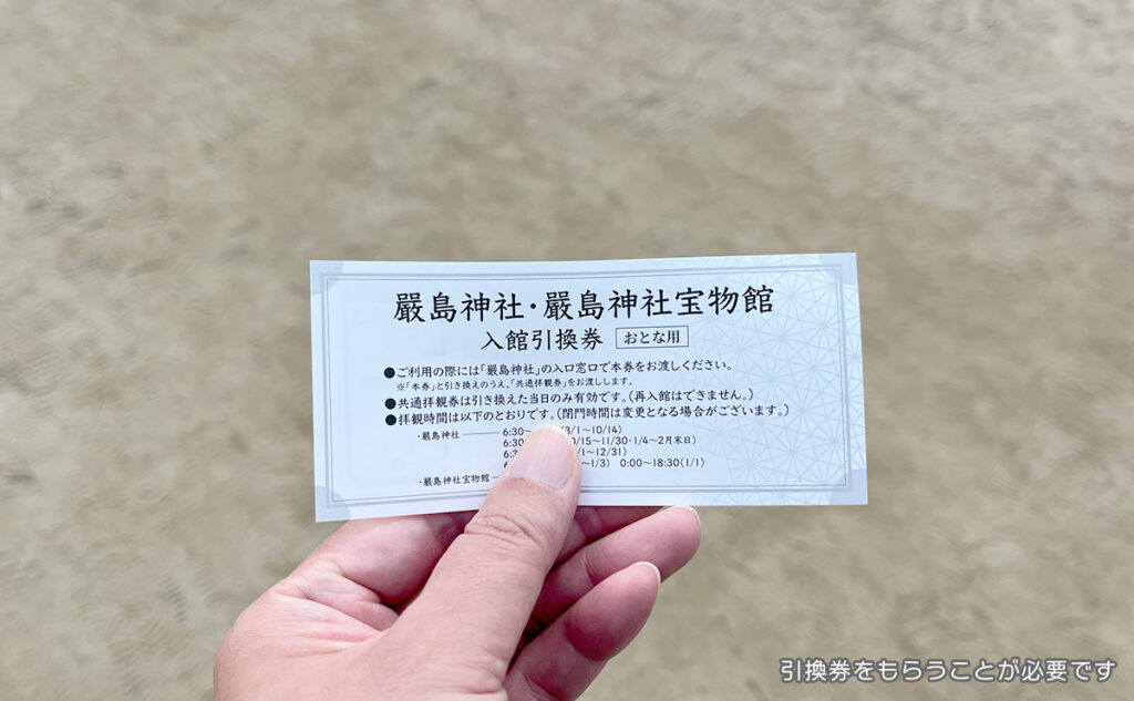 ぐるりんパスでは、嚴島神社の入場券をおもてなしトイレで引き換えます。
