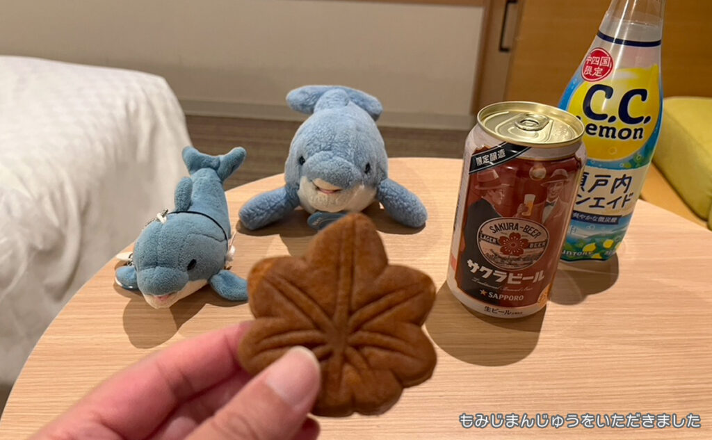 通常のもみじまんじゅうは、中にこしあんが入っているので、つぶあんが苦手なイルカちゃんでもおいしくいただくことができます。ここでは家族用のお土産を購入しました。