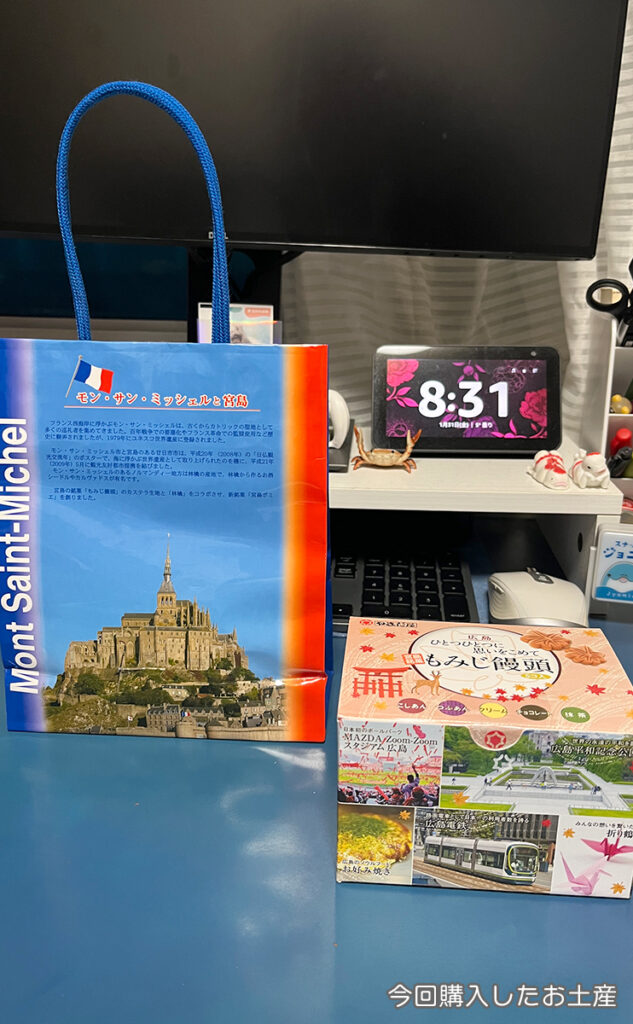 宮島はフランスのモン・サン・ミッシェル市と観光友好都市提携を結んでいて、ノルマンディー地方の名産「林檎」とやまだ屋とコラボさせ創ったお菓子です。