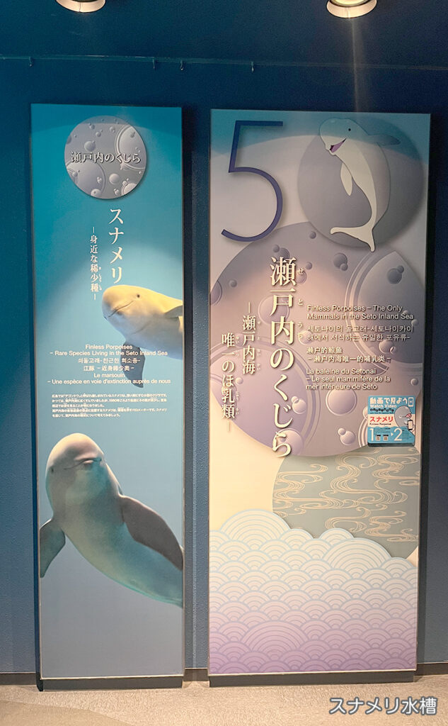 瀬戸内海に生息する生物を中心に、スナメリ、トド、ゴマフアザラシ、コツメカワウソ、カリフォルニアアシカ、ミナミアメリカオットセイなどが暮らしています。水族館自体もコンパクトで回りやすい構造となっています。
