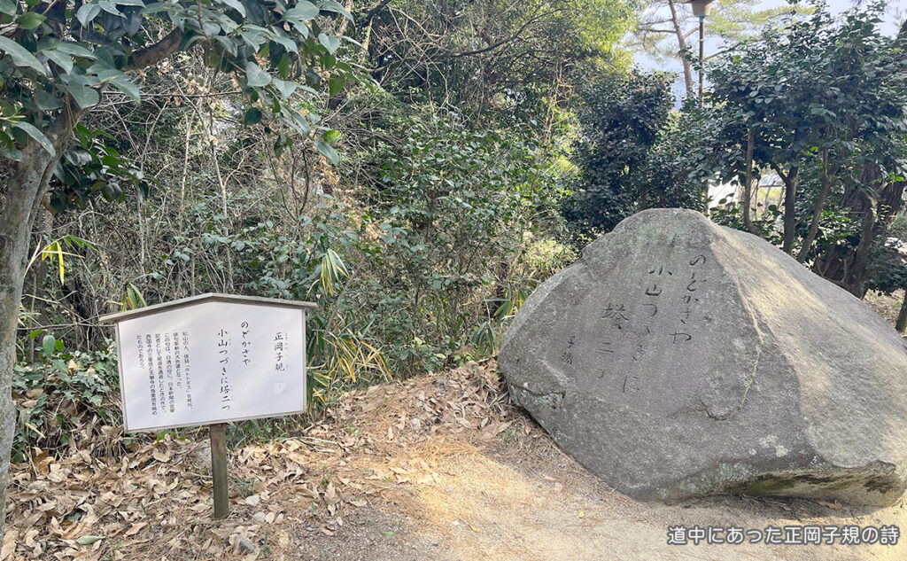 尾道ゆかりの25名の作家・詩人の詩歌・小説の断片等を、山頂から中腹にかけて石に刻んだ散歩道のことを「文学のこみち」といいます。